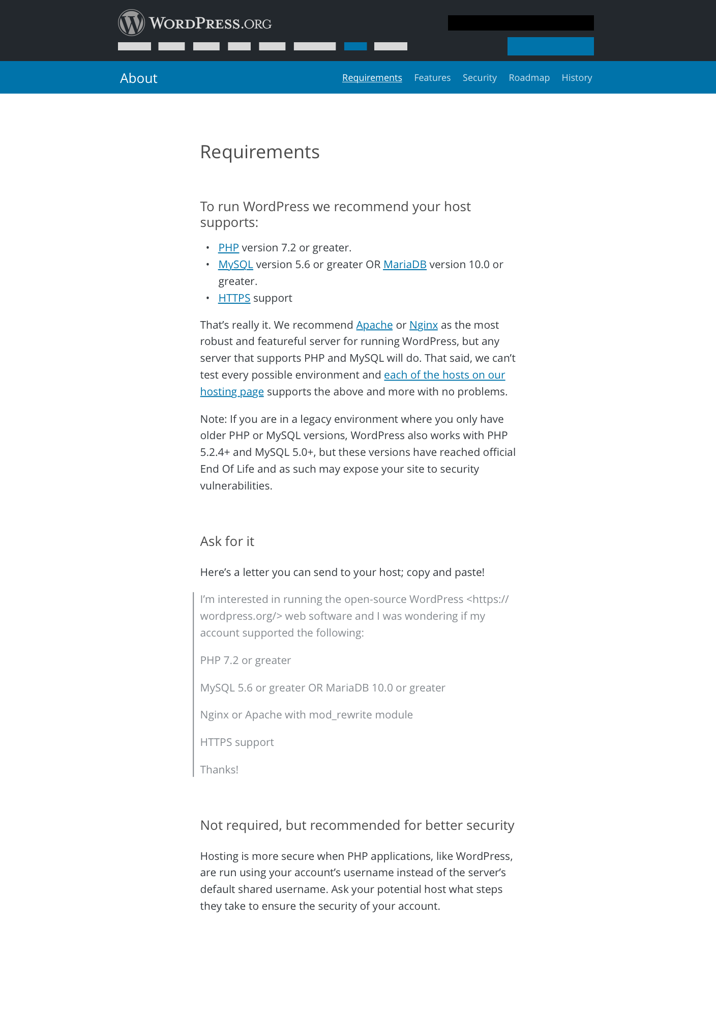 WordPress.org/about page outdated